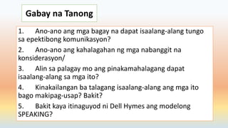 Nagalit si Rod at. Mga patnubay sa epektibong komunikasyon Gumamit ng mga katanungang may hinihinging tiyak na kasagutan. Ang mga panloob na distractions ay maaaring hadlangan ang epektibong komunikasyon.